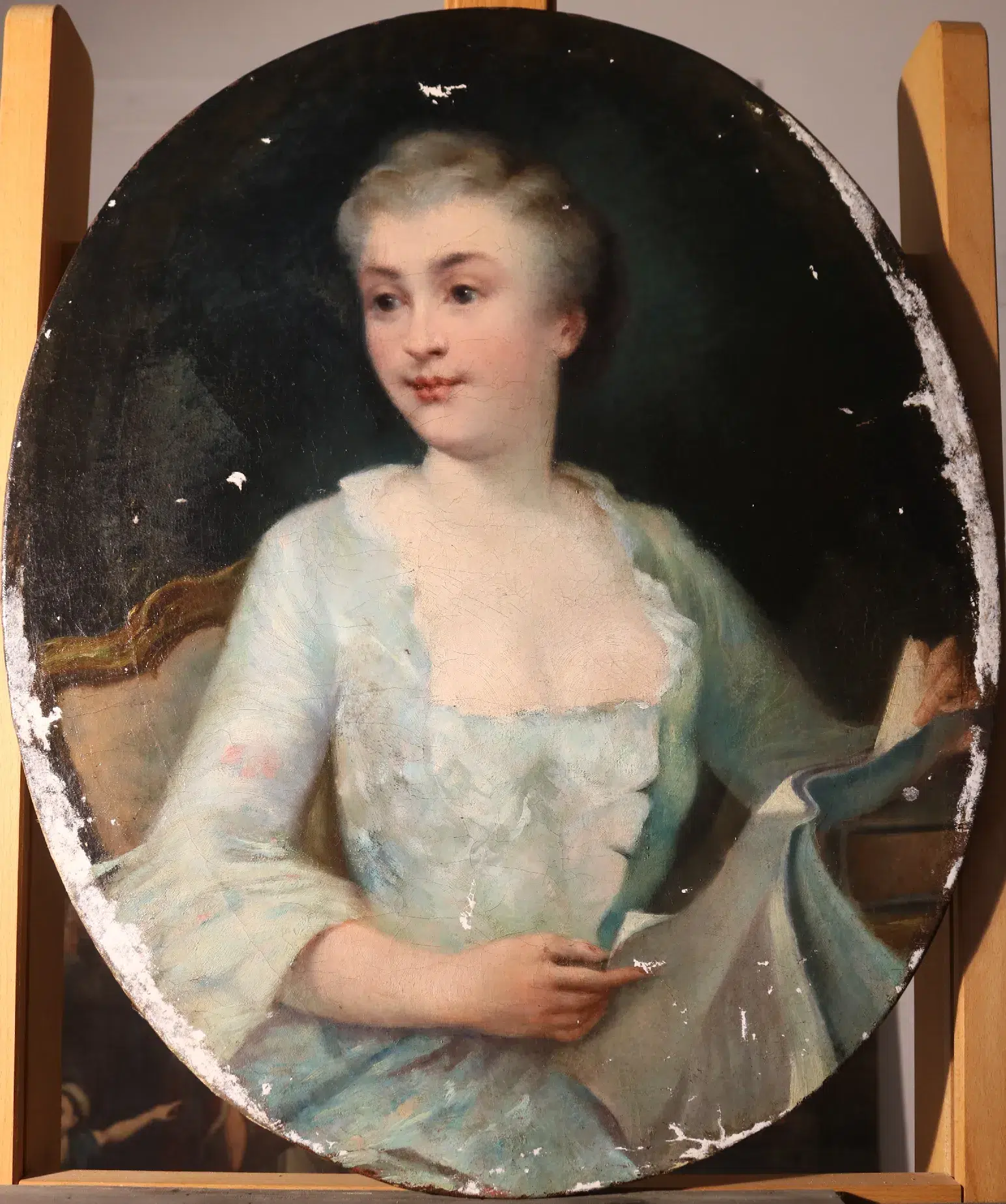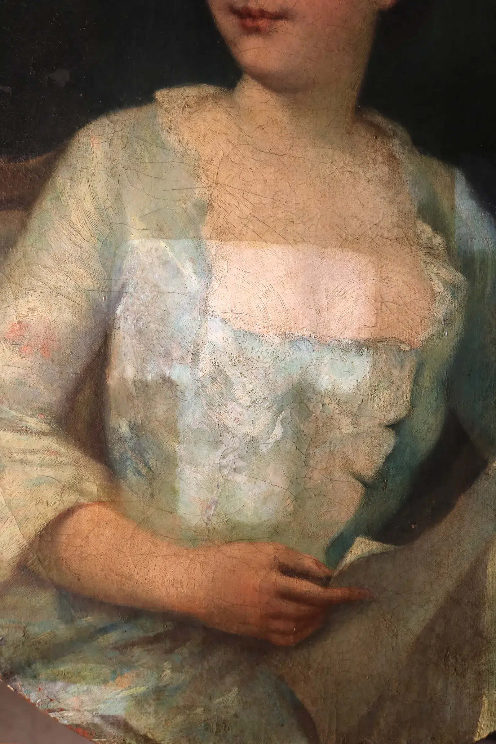 Ce tableau présenté une épaisse couche de crasse, un vernis très oxydé et des repeints sur toute la périphérie de l’œuvre. Il fallait trouver un protocole de retrait adapté à ces couches. Avant toute intervention de nettoyage, une batterie de tests préalables a été réalisée afin d’évaluer la sensibilité des matériaux constitutifs et de déterminer les systèmes les plus adaptés, dans une approche progressive, sélective et respectueuse de l’intégrité de l’œuvre.