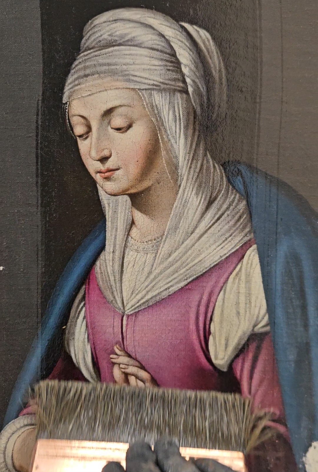 Cependant les différentes couches de vernis, les expositions à la pollution (fumée de cheminée, de cigarettes, de cierges, pollutions extérieures…) altèrent sa lisibilité, telle un « voile » souvent brun venant modifier considérablement l’aspect chromatique de l’œuvre. Sans compter les différentes interventions (anciennes restaurations, repeints) qui trahissent l’intention d’origine du peintre.