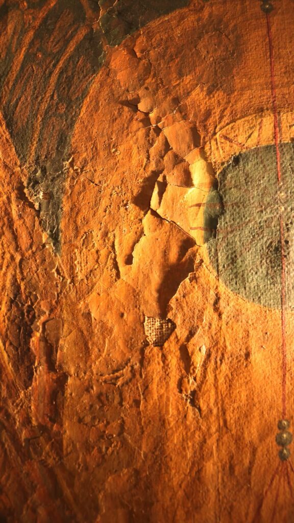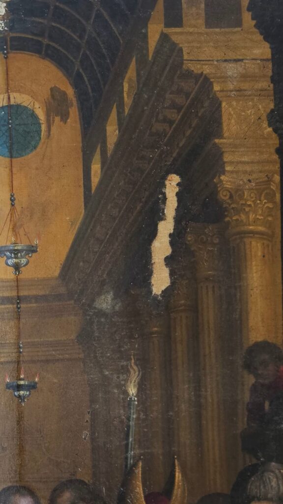 Au fil du temps, un tableau peut présenter des pertes de matière picturale, appelées lacunes, qui altèrent la lecture de l’œuvre et peuvent détourner l’attention du spectateur. La réintégration colorée est une étape de restauration visant à restituer visuellement ces zones manquantes, tout en respectant l’authenticité de l’œuvre.
